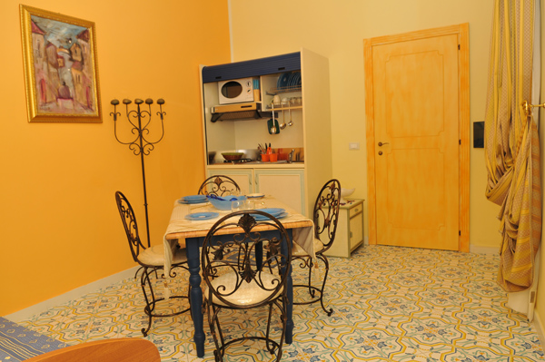 It 'consists of living area with kitchenette and sleeping area with independent and quiet room "soundproof".